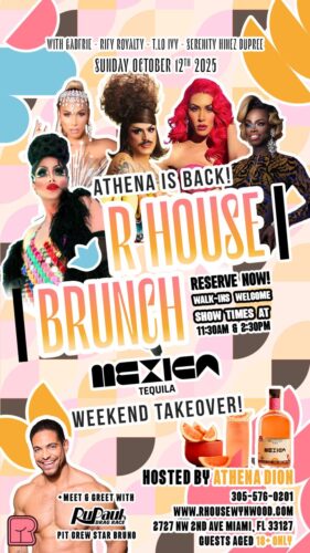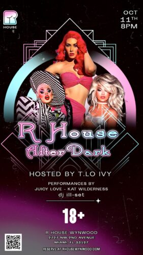 The party doesn’t stop after brunch-keep the celebration going at R House After Dark this Saturday, October 11th at 8PM! T.LO IVY is hosting a fierce night of drag, dancing, and nonstop energy in the heart of Wynwood.