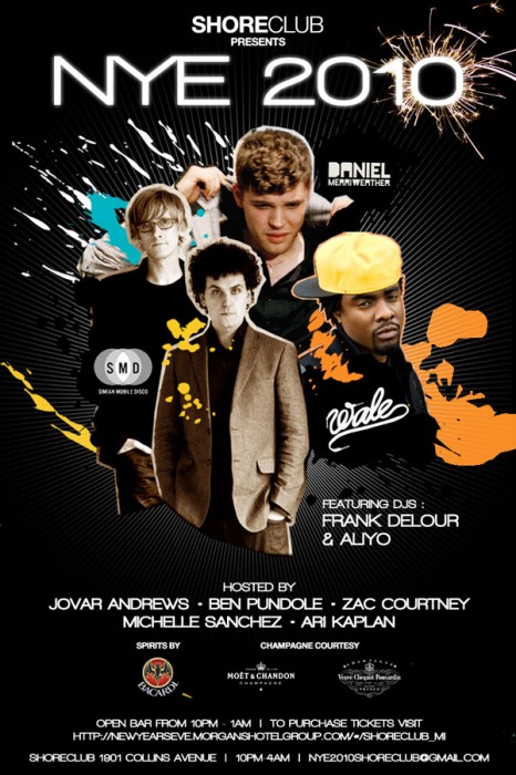 WHO: Performances by Wale, Daniel Merriweather and Simian Mobile Disco the New Year’s Eve 2010 celebration at Skybar at The Shore Club in Miami. Music by DJ Aliyo and Frank Delour.