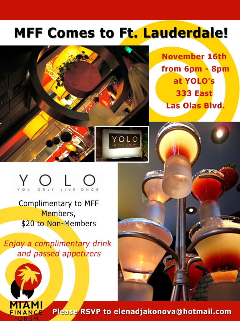 The Miami Finance Forum is excited to host our Ft Lauderdale Networking Happy Hour at fabulous YOLO restaurant!