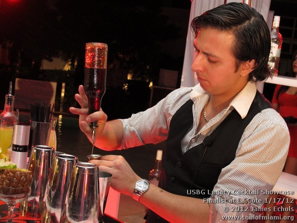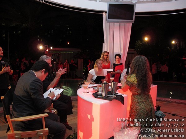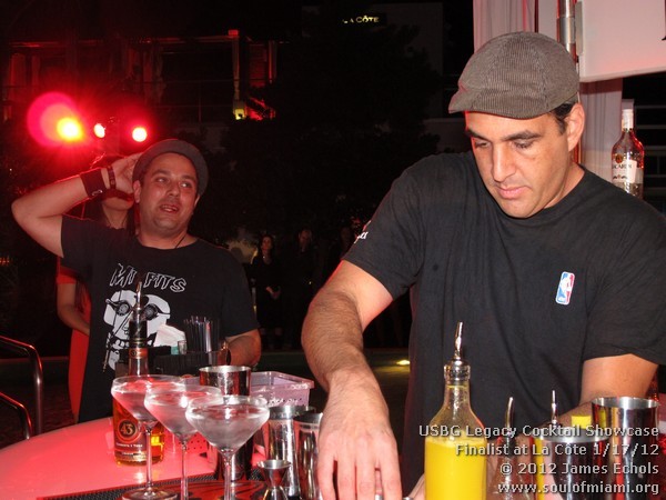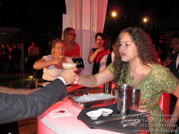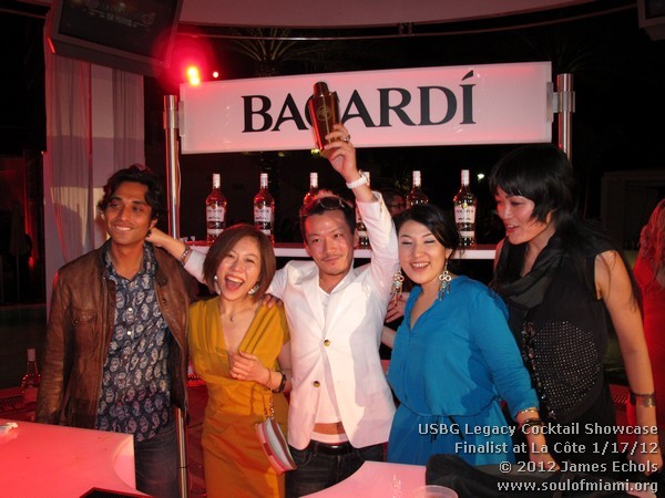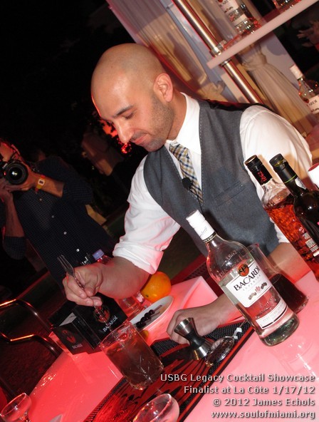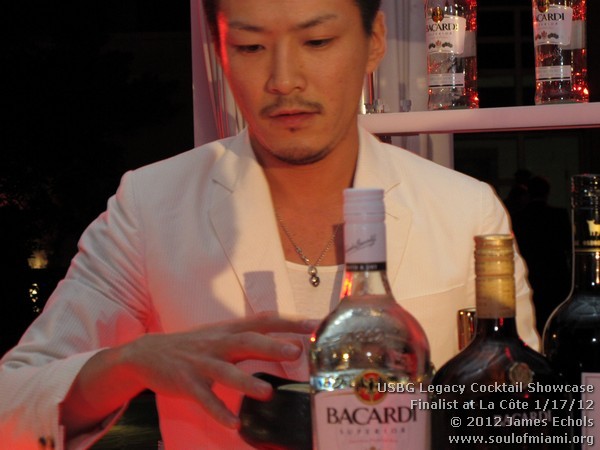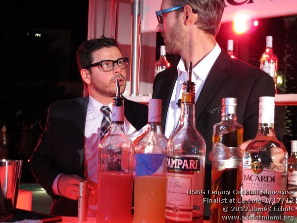 The United States Bartenders Guild (USBG) Legacy Cocktail Showcase Finalist sponsored by Bacardi at La Côte at Fontainebleau Miami Beach on Tuesday, January 17, 2012.  There were 12 finalists, all winners from previous showcases, which were held in Boston, Los Angeles, New York and Miam. Three winners were picked from each location and all came together Tuesday for the final showdown. The winner will represent the U.S., along with representatives from 25 other countries, at the World Finals in Puerto Rico in February 2012.