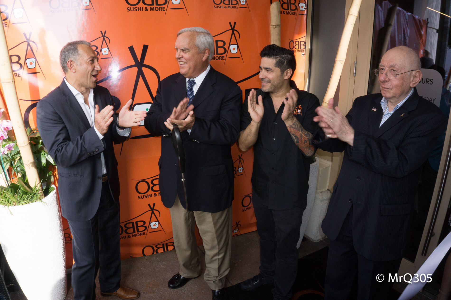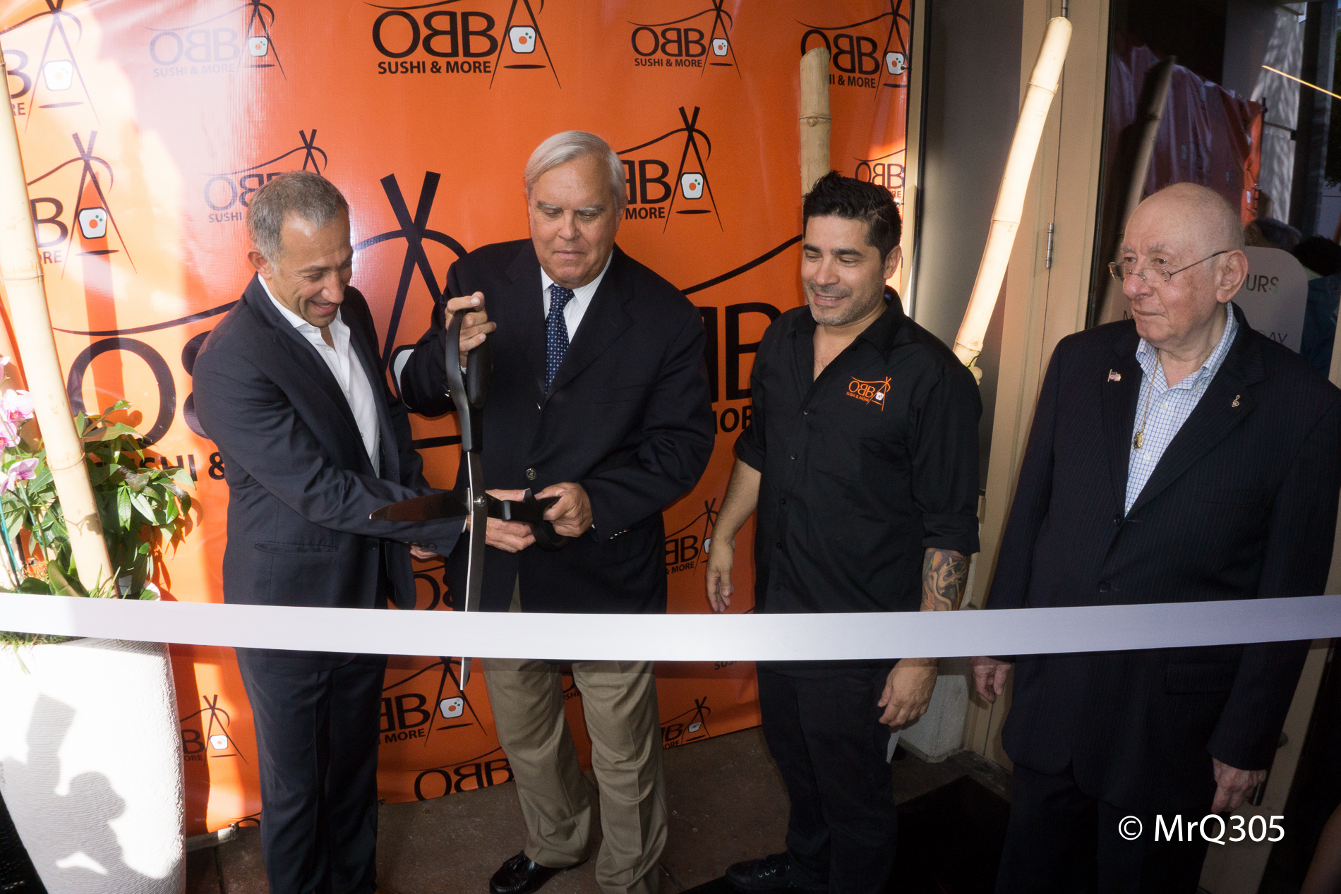 The Honorable Jim Cason, Mayor of Coral Gables presided over the cutting of the ribbon together with OBBA Sushi owners Walter Zapata and Tufic Akil. The Mayor also awarded Zapata and Akil with a Seal to City of Coral Gables based on their entrepreneurial achievements.