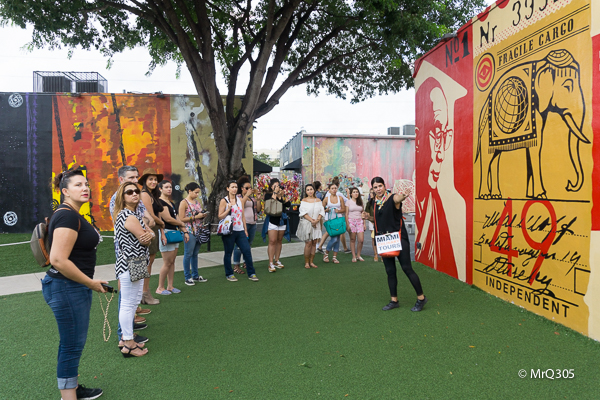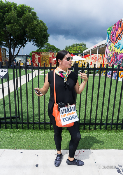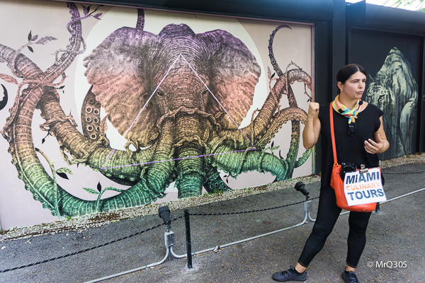 It is five minutes before noon on a on a hot and humid Saturday and while storm clouds are looming to the west, Gace Della is standing at the entrance of the Wynnwood Walls talking to a tourist-looking gentleman. She is easy to spot, she is dressed all in black and wearing a Miami Culinary Tours sign. I tell her who I am and she tells me to wait by the elephant mural “…we will start exactly at 12:00…almost everyone is hereâ€.