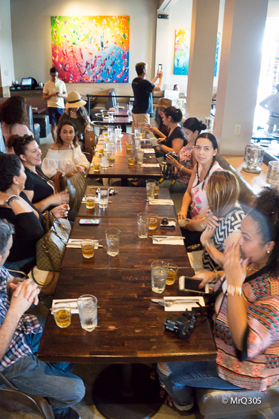 Wynwood Kitchen & Bar has outdoor seating but it is 92 degrees outside with like 90% humidity and on top of that it looks like a storm is coming. We opt to sit indoors. Wise choice, it is cool and comfortable, they have a large table set up for us and a great IPA beer at each spot waiting to be sampled. They read my mind.