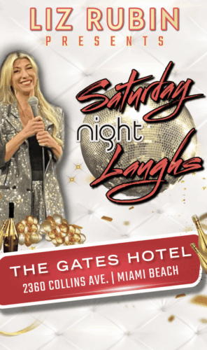 Saturday Night Laughs takes over The Gates Hotel South Beach on Saturday, October 11, from 8-10 p.m., bringing the “SNL” vibe to Miami with host and producer Liz Rubin, a veteran standup comedian with 15+ years of experience who has shared the stage with Jerry Seinfeld and Jim Gaffigan. The lineup features some of Miami’s top talent, including Ricky Cruz (HBO, NBC, AMC, Comedy Central South Beach Comedy Festival, Super Bowl LIV), Dom P. (Hulu, South Beach Comedy Festival, founder of Have-Nots Comedy), Abby Ballin (NYC-born comedian and media professional featured in The New York Times and Time Out NY) and Armand Solis (founder of Metro Dade Comedy, known for his high-energy antics and hosting across Miami stages).