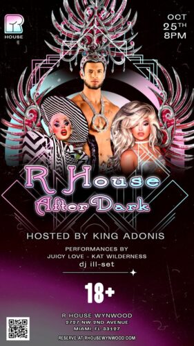 The party doesn’t stop after brunch-keep the celebration going at R House After Dark this Saturday, October 25th at 8PM! King Adonis is hosting a fierce night of drag, dancing, and nonstop energy in the heart of Wynwood.