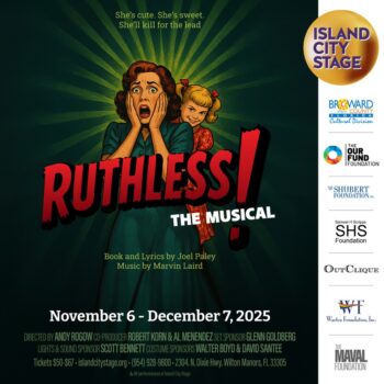 Buckle up for Ruthless! The Musical, the hilariously twisted comedy where the spotlight can be deadly, launching Island City Stage’s 14th South Florida Season on November 6. Meet eight-year-old Tina Denmark—a pint-sized diva who knows she was destined to play Pippi Longstocking in her school musical, and if she has to knock off the competition to get the part? Well, that’s showbiz! This Off-Broadway cult favorite is a deliciously campy satire packed with sharp wit, outrageous twists, and over-the-top characters. The show will run through December 7.