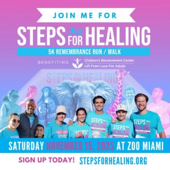 Join us at Steps for Healing, a 5K Walk/Run at Zoo Miami on Saturday, November 15th, 2025. This fun and impactful event benefits the Children’s Bereavement Center, a nonprofit that provides free grief support for anyone coping with loss. November is Children’s Grief Awareness Month and everyone is invited to come together to transform every mile into a message of hope for grieving children and families across Southeast Florida. Together, we can walk or run alongside those who need support, offering comfort, healing, and the power of community.