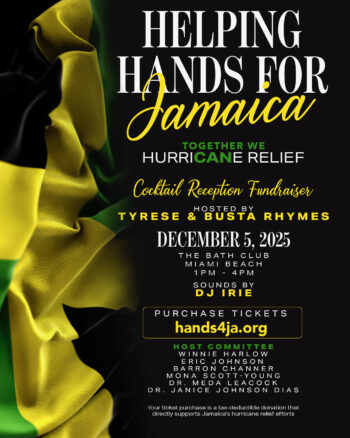 Guests will enjoy an afternoon of white-glove hospitality, impromptu performances, curated art, elevated cocktails, and music by DJ Irie at The Bath Club Miami Beach, one of Miami’s most prestigious private venues. Host committee includes Winnie Harlow, Eric Johnson, Barron Channer, Mona Scott-Young, Dr. Meda Leacock and Dr. Janice Johnson Dias. Tickets start at $250, available at hands4ja.org.
