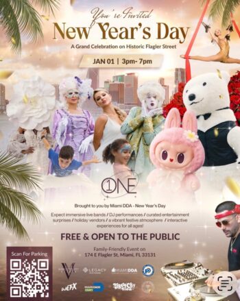 Kick off 2026 in the heart of Downtown Miami at the Miami DDA’s free, family-friendly 1One New Year’s Day Celebration. Enjoy live entertainment, children’s activities, a petting zoo, face painting, balloon art, a New Year’s Resolution Wall, and more along Historic Flagler Street.