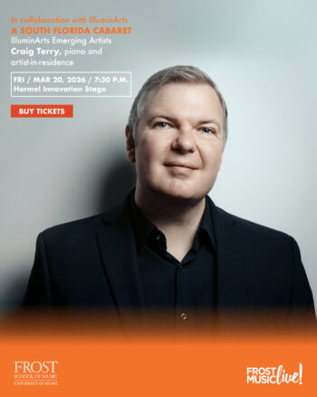 Be transported to 1960s Miami for an evening of song, storytelling, and immersive visuals with GRAMMY-winning collaborative pianist Craig Terry. In Frost’s first partnership with IlluminArts, select vocal students perform and curate a multimedia tribute to the Magic City, accompanied and mentored by Terry, the famed partner to Renée Fleming and Joyce DiDonato.