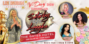 Saturday Night Laughs returns to The Gates Hotel South Beach on Saturday, February 14, from 8:30-10 p.m., bringing the SNL vibe to Miami with host and producer Liz Rubin, a veteran stand-up comedian with 15+ years of experience who has shared the stage with Jerry Seinfeld and Jim Gaffigan. The evening is headlined by Brittany Brave, a New York City–based comedian, actress, producer and host known for her high-energy, unapologetic comedic style. Originally from Miami, Brave has built a bicoastal career and earned accolades, including Best Comedy Act from Time Out Miami (2023) and Best Comedian from the Miami New Times (2021). Also featured is Abby Ballin, a South Florida-based comedian and producer known for her raw, autobiographical comedy, along with Jenny Baitch, a South Florida stand-up comedian and humorist. This 21+ event promises non-stop laughs in an intimate hotel setting with complimentary tastings from Aguasol Tequila. Paid parking is available at the venue. General admission is $25. Reserve your seat now on Eventbrite.