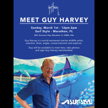 Guy Harvey, Ph.D., world-renowned artist, scientist, conservationist, and entrepreneur, will be available for meet-and-greets, photo ops and merchandise signing during the grand opening of Surf Style’s brand-new store, 5561 Overseas Hwy, in Marathon.