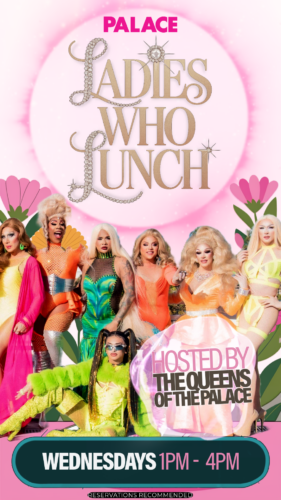 Turn your midweek into a main event at Palace Bar & Restaurant for Ladies Who Lunch every Wednesday from 1PM to 4PM, hosted by the fabulous Queens of Palace.