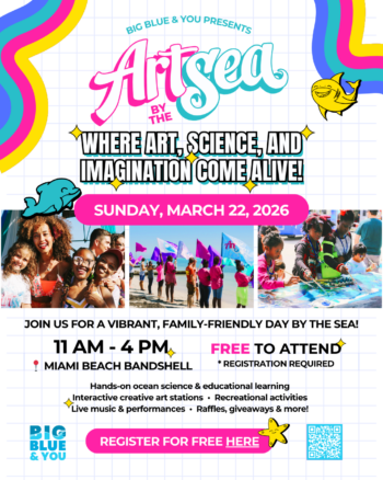 Big Blue & You, a Miami-based ocean conservation nonprofit, announces the return of Art by the Sea, a free Miami Beach celebration of ocean stewardship, creativity, and youth leadership, happening Sunday, March 22, 2026 (World Water Day) from 11 am-4 pm at the Miami Beach Bandshell (7275 Collins Avenue, Miami Beach, FL). This family-friendly festival offers youth leadership and creative experiences alongside interactive ocean science and sustainability activities, combining art, education, and environmental stewardship. Set against South Florida’s iconic coastline, Art by the Sea engages young people—especially from underrepresented communities—through hands-on learning, storytelling, and ocean-inspired creative expression. The event is free and open to the public. Attendees are encouraged to register here, and volunteers can sign up here.