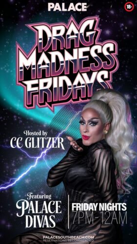 Fridays at Palace South Beach are pure chaos in the best way. Join us for Drag Madness every Friday night from 7PM to 12AM, hosted by CC Glitzer and featuring the iconic Palace Divas.