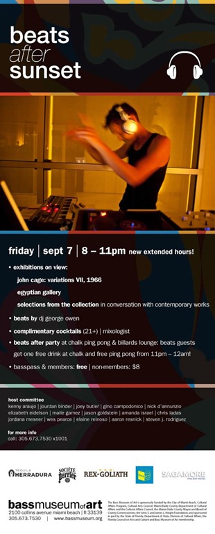 The Bass Museum of Art will offer guided group and private tours of Art Public and the Bass Museum in English. Walk-in tours (no reservation required) will take place at 10:30am, 11:30am, and 12:30pm, each day of the show. Each tour will take 45 minutes. Price: $8 per person, groups of 15 or more $5 per person. School group tours are available in English and will take 45 minutes. Price: $4 per child (free for accompanying teachers and parents).Private and group tours to be booked in advance. For reservations and further information, contact the Bass Museum of Art, Kylee Crook: Tel. +1 305 673 7530, ext. 9-1001; artpublic_tours@bassmuseum.org .